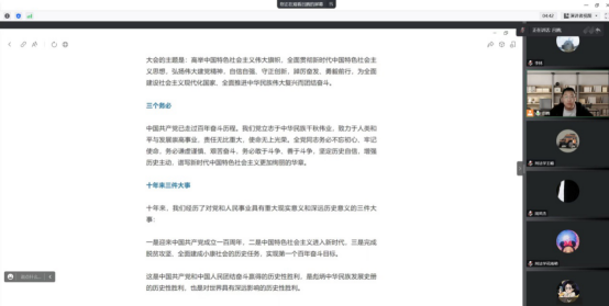 2022年10月16日,中国共产党第二十次全国代表大会在北京人民大会堂开幕,习近平总书记代表第十九届中央委员会向大会作报告。曼联直播 组织全体师生通过电视、手机、网络直播等方式收看了开幕会,并全程认真聆听了党的二十大报告。为了进一步加深对二十大报告内涵的理解,我院研究生第三党支部通过腾讯会议组织学习了党的二十大精神。