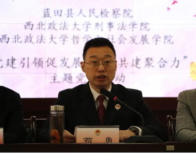 会上,苟勇对西北政法大学一行表示欢迎,介绍了蓝田县人民检察院党组织党建活动开展情况。他提出,此次活动是进一步推进“检校合作”的有益实践,指出要通过“五个建设”充分发挥党建内核驱动、示范领航作用,强调了法学教育与检察实务融合发展的重要性,并对检校合作的进一步发展进行了展望。