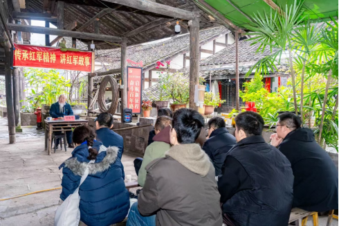 学习团全体党员一抵达泸州,即乘车赶往泸州市古蔺县太平镇中国工农红军四渡赤水太平渡旧址,凭吊在太平渡死难的烈士,并为太平渡口纪念碑敬献了花篮,重温了入党誓词,以此来深切缅怀革命先烈的丰功伟绩,致敬人民英雄的崇高精神。随后,党员代表参观了四渡赤水太平渡陈列馆和太平古镇红军驻地革命旧址,集体聆听了红军后代胡敬华老人讲述长征故事,近距离感受老一辈无产阶级革命家为党和人民辛勤劳作、无私奉献的光辉历程,以及以毛泽东同志传奇的军事才能和卓越的领导智慧。