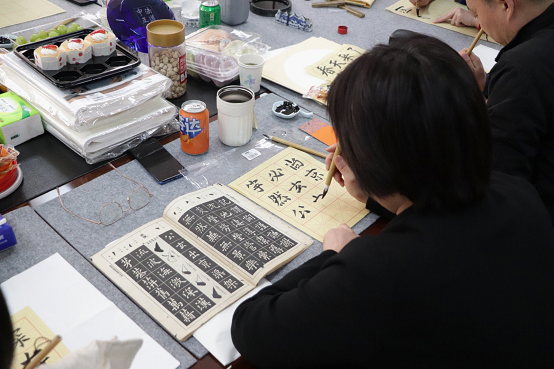 书法体验环节中,师生们热情高涨,纷纷拿起毛笔临摹练习。孙学龙书记现场指导,从握笔到运笔,耐心地讲解示范。活动现场墨香四溢,大家沉浸其中,其乐融融。此次体验让大家在感受书法乐趣的同时,深刻体会到中华文化的博大精深,激发了师生们学习书法、传承文化的热情。