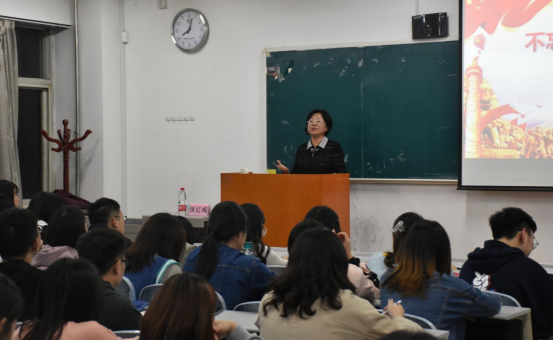 首先,侯红梅副书记向同学们阐明了开展“不忘初心、牢记使命”主题教育的重要性,她强调中国共产党的初心就是为中国人民谋幸福,为中华民族谋复兴,这是激励一代共产党人前赴后继、英勇奋斗的根本动力。接着侯红梅副书记从现实情况出发,列举生动案例,从守初心、担使命、找差距、抓落实四个方面依次向同学们阐述了主题教育总要求的具体内涵,充分展示了这四点要求的合理性、必要性以及现实意义。
