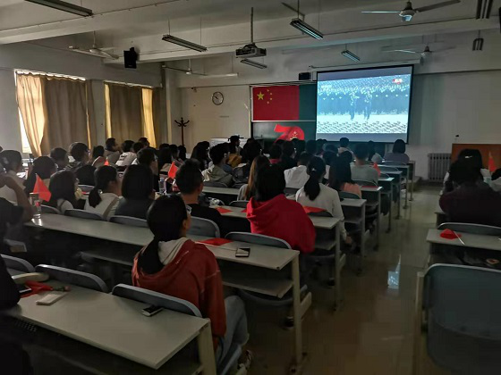 学院党委副书记、副院长侯红梅老师说道:“阅兵式上我们看到了中国人民解放军铮铮铁骨保家卫国的使命和担当,感受到伟大祖国和平崛起,中华民族伟大复兴,更加坚定了我们自觉地坚持道路自信、理论自信、制度自信和文化自信。”