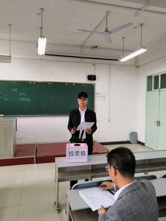 大会通过学院刑法学教研室杜发全老师为总监票人,谭堃老师和罗长征老师为监票人,薛晖老师和李锟老师为计票人。总监票人杜发全老师主持了选举大会,清点到会人数、检查投票箱、安排李子榛老师宣读工会委员候选人个人介绍,并组织监票人清点选票、统计选票和报告计票结果。