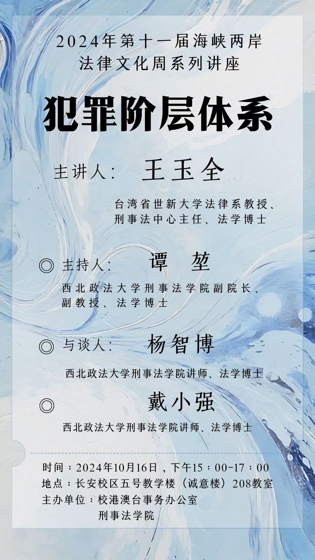 上一篇:2024年第十一届海峡两岸法律文化周系列讲座-犯罪阶层体系