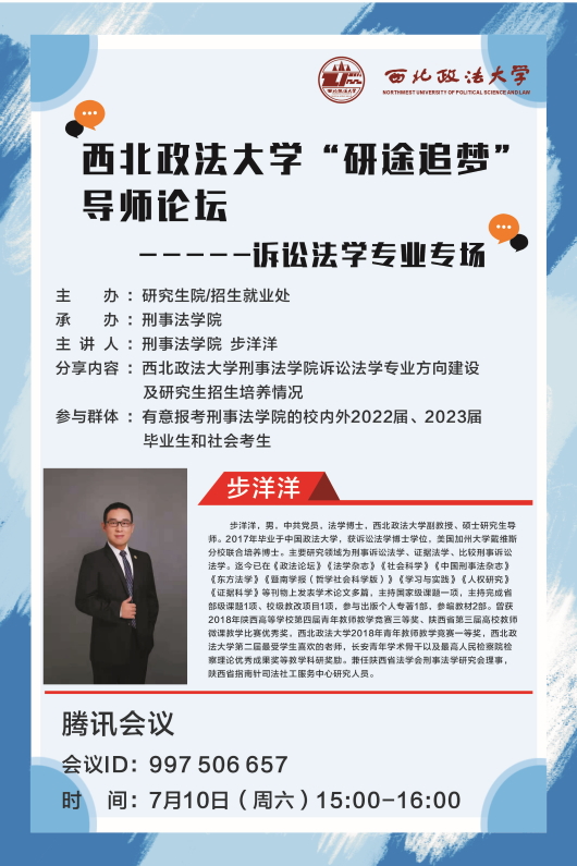 下一篇:西北政法大学“研途追梦”导师论坛-刑法学专业