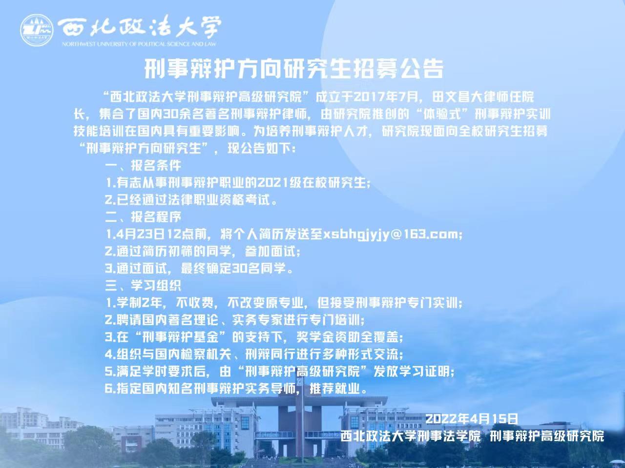 上一篇:研究生培养 | 刑事辩护方向研究生招募公告
