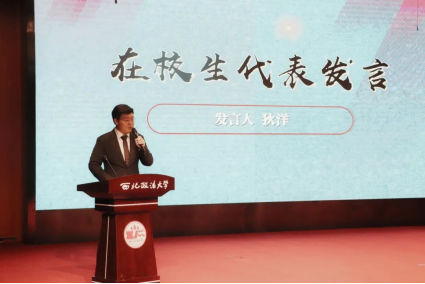 新生代表焦思远对即将到来的大学生活充满期待,并呼吁全体同学努力学习和实践,不断提升自己的专业技能和综合素质,齐心协力,铸剑前行,共同书写属于西法大学子的辉煌篇章。