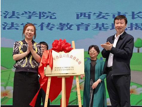 揭牌仪式由何鑫主持。姚雪佳为揭牌仪式致辞。她希望普法宣传教育基地能够成为学生们学习法律知识、增强法治观念、提高法律素养的重要平台,也希望学生们能够成为遵纪守法的好公民,为建设法治社会贡献自己的力量。