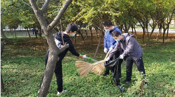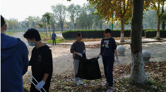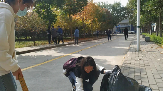 1030日下午,学院组织2019级学生志愿者开展校园公共区域清扫活动。院党委副书记侯红梅老师、19级辅导员张瑞老师一同参与了清扫活动。伴随着秋日的暖阳,同学们充满了劳动的热情,左手拿着黑色垃圾袋,右手戴着白色手套,拿着铁夹和扫帚,俨然成为了校园文明小卫士,不放过任何一个角落,对校园垃圾进行全面彻底清理,为净化校园环境做出自己的贡献。
