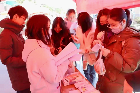 展板之上,色彩斑斓的贴纸记录着“飞花令”的赛况和同学们推荐的最佳书目,承载着学子们对诗歌与书籍的热忱;精美的明信片上,参与者手写的真诚祝福与美文佳句寄托着大家对有缘人的共励共勉和美好期待;盲选换书,不仅仅是一个交换书籍的共享活动,更是一个收获意外惊喜、探索未知领域的绝妙契机;学以致用,其有趣的答题方式和精心准备的奖品吸引了不少同学驻足参与,寒冬之下,热闹不减……