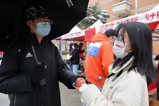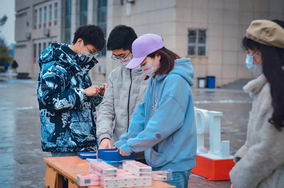 考研前夕,西北政法大学法叨叨团队协助秦美农好团队搭建考研学子校内援助站,并将自主设计的防疫口罩提供给援助站,同援助站前的志愿者们一起助力考研,为备战考研的学长学姐送去温暖。
