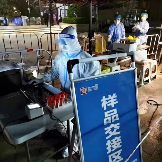 在数日的志愿活动中,王泓罡主要负责核酸检测样本的转运工作,将每一份样本扫描登记,打包消杀后将它们交给工作人员。