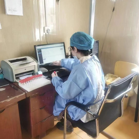 谈及志愿工作的经历,张璐说:“我很早就来到核酸点跟妈妈学习如何操作登记系统、如何正确采集核酸以及不同人员的核酸流程、消毒、配合等等。在这个说大不大说小不小的中心镇只有两个核酸检测点,我和另外几个大学生志愿者坚守在镇医院的岗位上,这段时期是回家和出去打工的高峰期,做核酸的人数惊人的多,刚开始几天总有些手忙脚乱,母亲总会笑着安慰我:只要你面带笑容没有人会为难你。每天七八点我都会到核酸检测点穿好防护服、打开电脑系统,拿出昨天闲暇时贴好标签的采集管,然后颇具仪式感地打开隔离窗,开始今天忙碌的工作,偶有闲暇便给采集管贴标签或者学习。妈妈也会时不时偷拍我,发朋友圈并配文‘小时候的跟屁虫长大啦。’弄得我哭笑不得。”