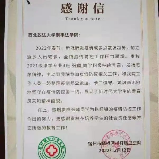 他认为,作为一名大学生,应该弘扬和践行志愿服务精神,敢为人先,勇于担当,他希望在未来的日子里,自己能将这份热情继续保持下去,更加积极主动地参与各类志愿活动,也期待疫情早日结束,可以回到西法大的校园。