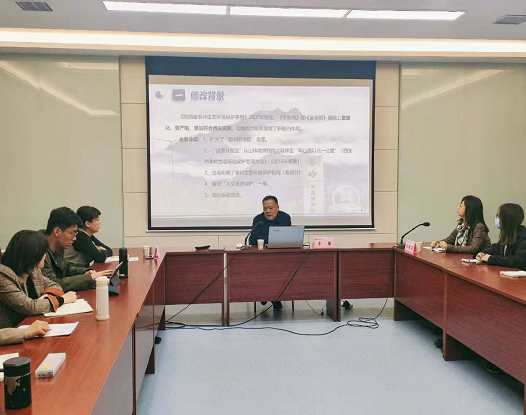在讲座中,牛犁主任介绍了《西安市秦岭生态环境保护条例》修改的背景、主要内容和特点。牛犁主任指出,条例修订主要有三个原因:一是贯彻习近平生态文明思想;二是巩固秦岭违建治理的成果;三是相关上位法作了修改。关于《西安市秦岭生态环境保护条例》的特点,牛犁主任认为,它扩大保护范围强化了管理体制,保护措施增加新的内容,增设了禁止行为及其适用范围,加大了处罚力度。在讨论中,程娜副处长根据自己学习习近平法治思想的体会谈了新时代我国立法工作的要求,并结合《西安市秦岭生态环境保护条例》的修订工作向同学们介绍了如何做一名合格的立法工作者。