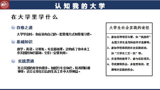 第三点则是学习大学生存规则。大学之中汇聚了五湖四海的同学,我们的交际圈也会逐渐扩大,人际交往能力成为了大学生活的必要技巧。他希望同学们能够有一个谦虚的心态,多总结多学习,在大学舞台上尽情展现自己的风采。