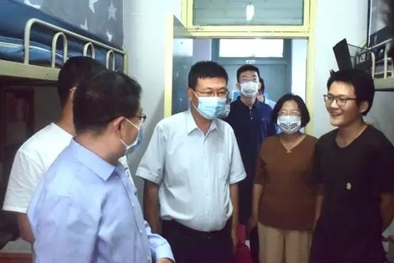 9月10日下午,校党委书记孙国华、党委副书记郭武军一行走访了曼联比赛直播 2019级学生宿舍,与学生们亲切交流,并为同学们送上了中秋节礼物。曼联比赛直播 院长冯卫国、党委副书记侯红梅陪同慰问。