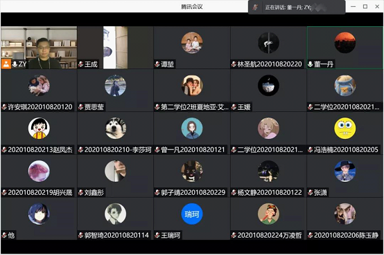 特殊开学,全新开始。对于2021级的同学们而言,线上教学开启新的一学期显得很重要。面对新课程,同学们难免会有陌生感,再加上线上授课方式的非直面性,我不能即时观测到同学们的状态。这意味着同学们需要提高提高学习的自律性和主动性。同时我也顺应线上教学的特点,尽可能地从各方面细节出发,为保障教学良好、有效开展作了充分的准备和完善。新学期的课程以腾讯会议的形式给同学们授课,课前准备充分、学习氛围营造良好,如此下来,我相信授课听课的体验、成果可能不会比线下教学差。