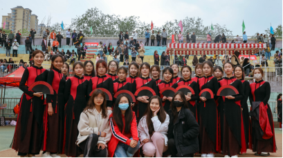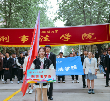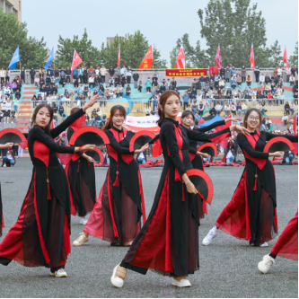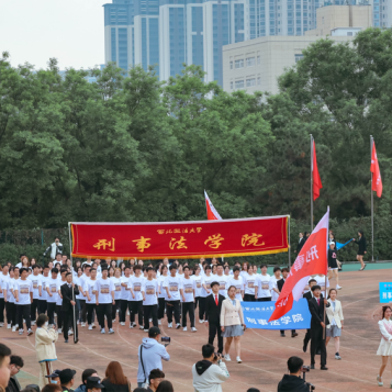 而后鼓点声起,随着节拍的不断加快,观众的热情也随之而起,现场气氛逐步提升。“一键换装”后,阵列迅速排开起势,进入舞蹈的第二阶段。“嘈嘈急雨”中,同学们的动作整齐,干练利落,英姿飒爽;“切切私语”下,舞姿婀娜,长袖曼舞,动人心魄。团体操+国风舞蹈的组合,使得整场表演节奏张弛有度,起落开合之间,彰显着刑院学子的青春激情与奋进姿态。