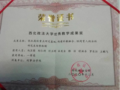 《刑法学》课程及其所依托的刑法学科受到国内刑法学界和法学教育界同行的高度评价,在西北地区和全国具有重要影响。1996年刑法学科被评为司法部重点学科;1997年被评为陕西省重点学科;2003年刑法学课程被评为西北政法学院精品课程;2004年被评为陕西省精品课程;2008年被评为国家级精品课程;2020年被评为陕西省一流本科课程。