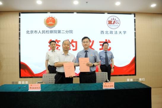 活动中,双方围绕人才培养、理论研究、履职实务、教育培训等方面展开了深度交流。北京市人民检察院二分院第二检察部主任王宏平,机关团委书记谢坤,信调宣案青年突击队队长刘轩,第七检察部检察官助理于剑,我校校友、第一检察部检察官助理关丰等同志分别介绍了在办理危害国家安全犯罪、恐怖活动犯罪、公益诉讼检察、信调宣案以及机关团委青年工作等领域的经验与成果与从检感悟。冯卫国院长、冉巨火院长、汪鹏执行主任分别介绍了学校的教学科研实力、师资队伍建设及近社会服务成效。双方共同签署了《北京市人民检察院第二分院与西北政法大学合作协议书》,并隆重为检校共建“实践教育基地”揭牌。