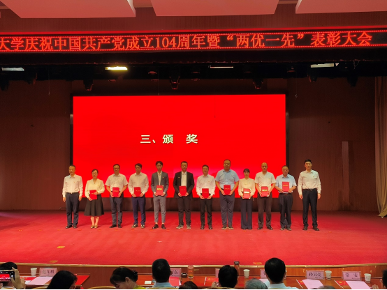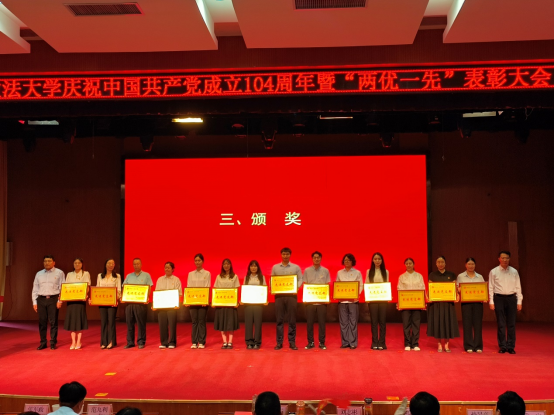 为进一步贯彻落实党的二十大和二十届二中、三中全会精神,深入贯彻中央八项规定精神学习教育走深走实,激励广大党员创先争优、接续奋斗,7月1日下午,西北政法大学庆祝中国共产党成立104周年暨“两优一先”表彰大会在长安校区满天星学术报告厅隆重举行。
