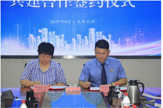 仪式伊始,全体参会人员共同观看了西北政法大学宣传片,直观了解了我校在法学教育、人才培养及学术研究等方面的发展成果与特色优势。随后,郭泉宣读了《曼联直播-曼联比赛直播 国家检察官学院新疆分院共建合作意向书》,清晰阐述了双方在基地建设、人才培养、理论研究、涉外法治、师资共享等领域的合作规划与目标。随后双方代表正式签订共建合作意向书,标志着两单位携手开启全方位、深层次合作的新篇章。