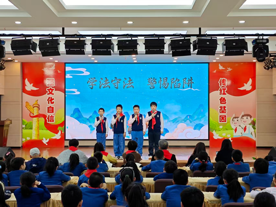 接着,西安小学的同学们带来“反诈小卫士”普法科普小剧场,以生动形象的形式揭露常见诈骗手法,在轻松氛围中提醒同学们提升防诈骗意识与法治观念。西小同学精心排演朗诵作品《宪法,在我们身边》,用真挚的声音讲述宪法与日常生活的紧密联系,诠释了人人懂法,人人守法、尊重宪法、信仰法律的重要性。