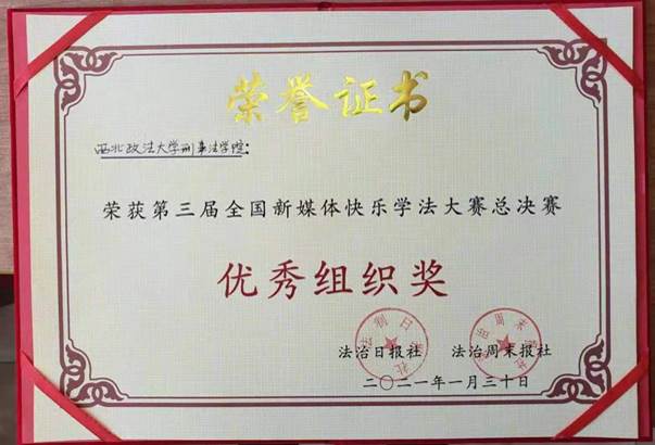 由司法部普法与依法治理局指导,中央政法委机关报法治日报社主办,法治周末报社承办的第三届全国新媒体快乐学法大赛1月30日在北京圆满举行。法治日报社党委书记、社长邵炳芳致辞,北京人民广播电台主持人李雷担任本次总决赛主持人,司法部普法与依法治理局副局长刘汉银、北京市司法局办公室副主任刘宁、法治日报社北京记者站站长黄洁等人出席决赛。曼联比赛直播 获得本次快乐学法大赛优秀组织奖荣誉称号。