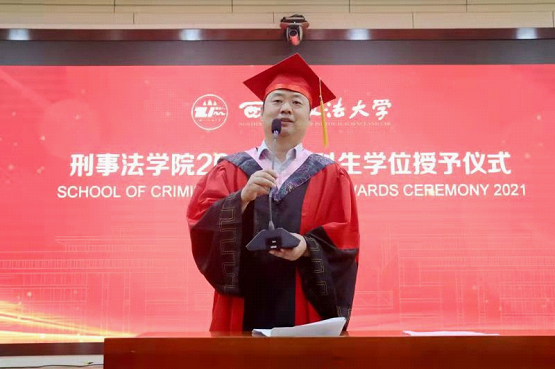 学位授予仪式在庄严雄壮的国歌声中拉开帷幕。曼联直播 院长冯卫国代表学院向全体毕业生致以最热烈的祝贺,向辛勤培育同学们的父母和老师致以衷心的感谢。冯卫国院长从高度、宽度、温度和气度这四个“度”入手,对同学们提出殷切希望和要求,希望各位同学不忘初心、持续学习,努力成为一名新时代优秀的法律人。