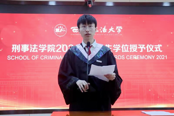省级优秀毕业生代表郭思宇同学发言,他代表全体毕业生对母校和学院精心地培养和教育表示感谢,分享了临行前与同窗离别的难舍,表达了对师友的祝福和感激之情。并向全体毕业生提出如下倡议:永远坚守初心、信仰和精神;树立终身学习的理念;脚踏实地、铸就强大内心;不忘师恩,永远同母校心连心。