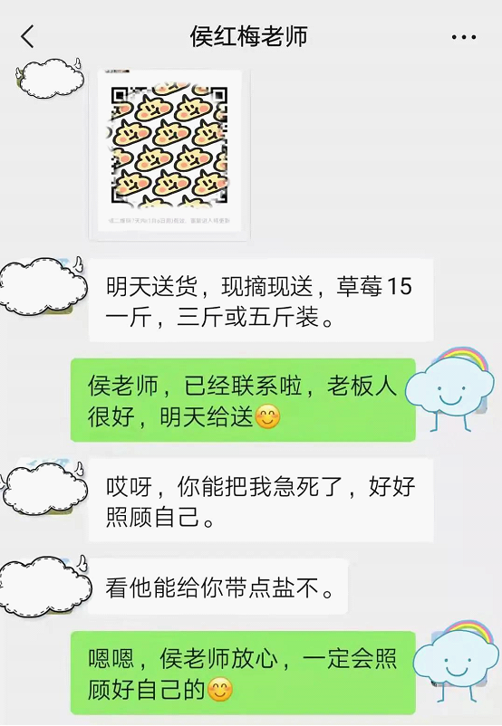 侯老师不仅关心一起工作同事,也非常爱护学生们,关心学生们的身体健康。在这个特殊的时期,因为疫情管控,许多药店不再提供外卖服务。18级考研学生唐宇果因为学业压力导致慢性疾病发作,因为自己无法购药,求助侯老师。侯老师得知后在网上为唐同学找到一家能够配送的药店,并且承诺为唐同学在校门口取药送至她的宿舍。唐同学在采访中感慨:“慢性病不吃药会很不舒服,本来以为学校不会管,让我忍一忍。但是老师们都很体谅学生,咱们刑事法的老师真的很热心。”