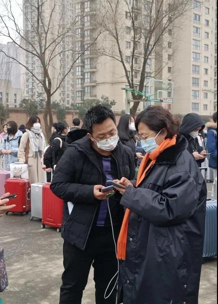 连日来,学生返乡工作专班成员总是凌晨两三点还盯着手机,实在累了也是把手机调成震动紧紧攥在手里眯一小会,怕自己错过紧急重要的通知不能及时转达给学生,定了很多个闹铃提醒通知学生按时集合。每一次集合乘车,无论是料峭寒冬的晨曦还是大雪纷飞的深夜,学院党委副书记侯红梅和辅导员们一遍遍清点核对人数,悉心叮嘱返家途中注意事项,目送学生上车才能安心离开,转身大家又奔赴下一个集合地点。