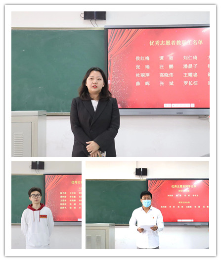 随后,学院党政班子成员为师生优秀志愿者颁发荣誉证书以及奖励。这份荣誉是对愿者们的肯定,希望他们可以坚守初心,牢记使命,弘扬抗疫精神和志愿精神。