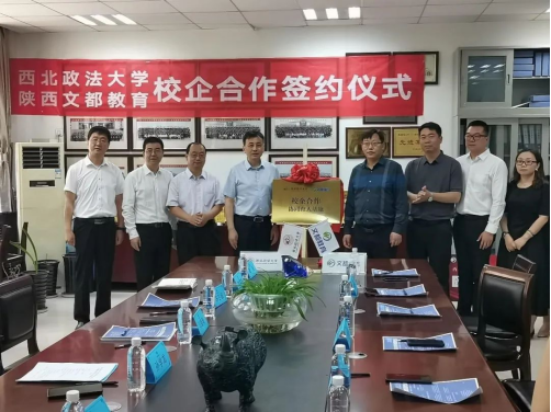 2022年6月2日上午10:00,西北政法大学与文都集团校企合作协同育人基地签约暨揭牌仪式在曼联直播 资料室举行。西北政法大学副校长马朝琦出席签约仪式并致辞。文都教育集团董事、总校长王选民,曼联直播 班子全体成员以及校企双方代表20余人参加了签约仪式。