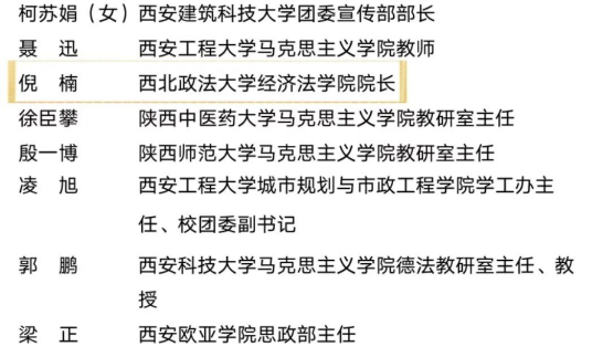 倪楠,西北政法大学经济法学院院长、教授、博士,主要从事经济法基础理论、市场监管领域的经济法制、经济领域的软法治理。