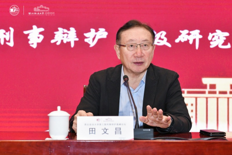 中华全国律协刑事辩护委员会顾问、北京京都律师事务所名誉主任、西北政法大学刑事辩护高级研究院名誉院长田文昌致开幕辞。